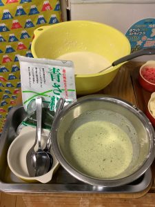 生地は2種類用意しました♪プレーンと抹茶