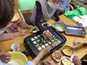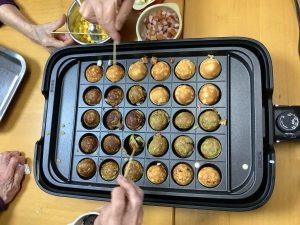 生地をたこ焼き型に流し込み